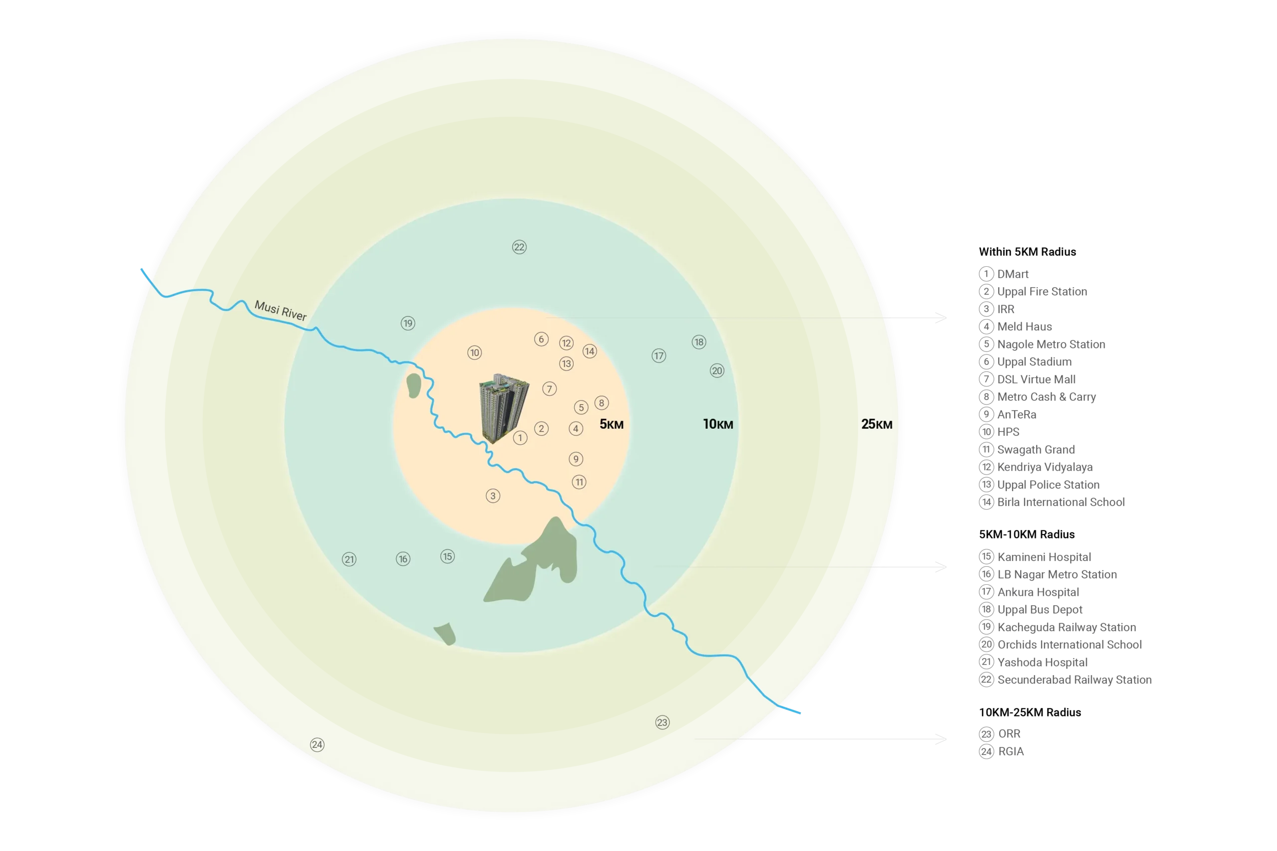 - Secunderabad Railway Station 10 Km